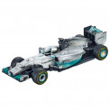 The set includes two racing cars including the ferrari sf15-t of Sebastian Vettel and the Mercedes of Lewis Hamilton.