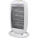 This white-finished Challenge halogen heater has a heat output of 1.6kW with four heat settings and a safety cut out switch to prevent it from overheating.