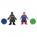 Includes metropolis and gotham city playsets with flight tower connector, batman and superman figures, flight suit, 4 pie projectiles, 2 other projectiles and a manual elevator.