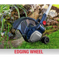 For accuracy while edging, a wheel supports the weight of the trimmer.